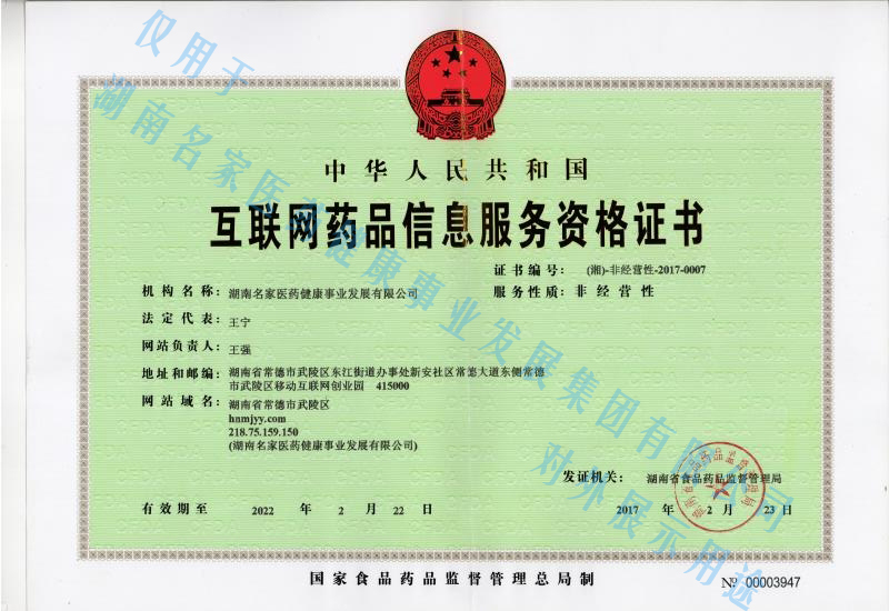 名家医药互联网药品信息服务资格证书